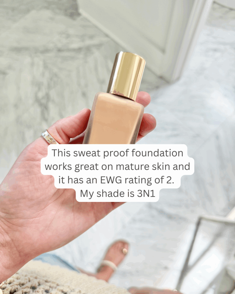 I thought I would start with one of my longest standing products, this sweat proof foundation. It works great on mature skin and it has an EWG rating of 2. My shade is 3N1.